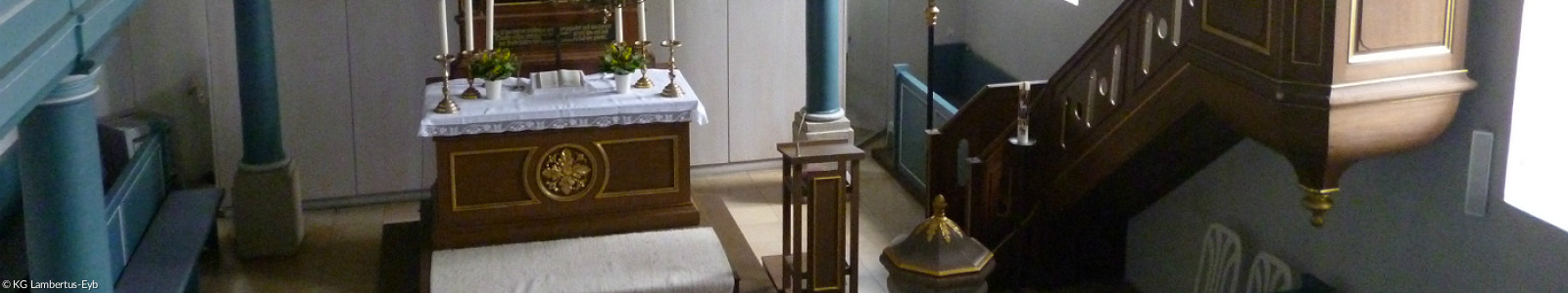 Der Passionsaltar von 1750 und die Statue des Guten Hirten Christus aus dem Jahr 1992 prägen den Raum.